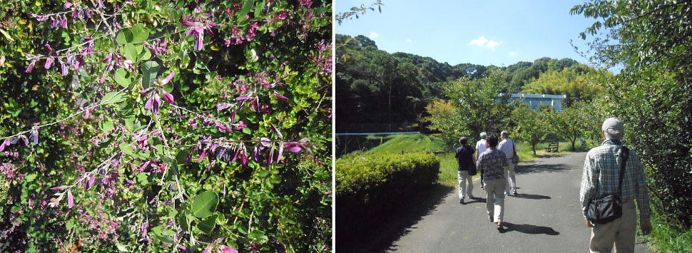 駐車場から考古館を目指して歩く。廻りには季節の花、萩が花盛り。