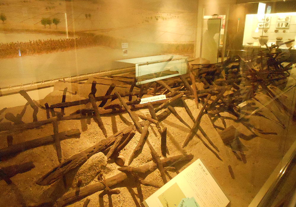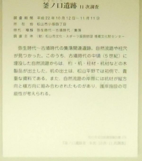 愛媛県松山市西郊にある古墳時代(4〜5世紀)の堰堤遺跡。1972年,松山市南江戸町にある下水処理場建設工事で『木組み