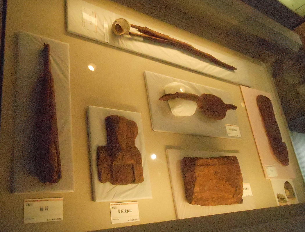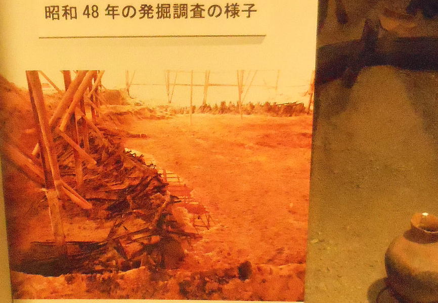 この遺跡の保存には、出土した木材にPEG(ポリエチレングリコール)液保存処理法を施すことによって、木製品の半