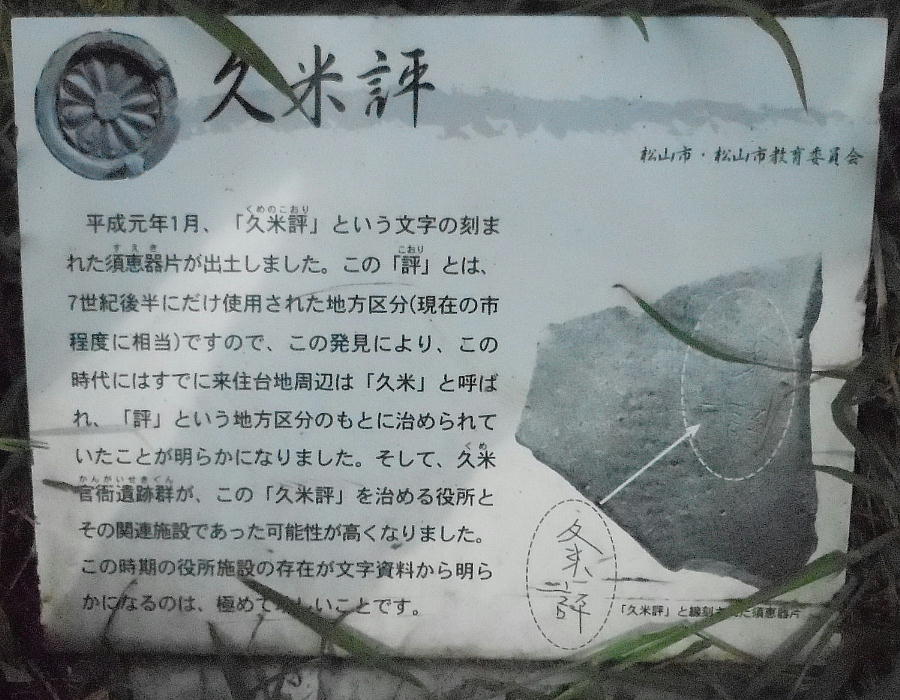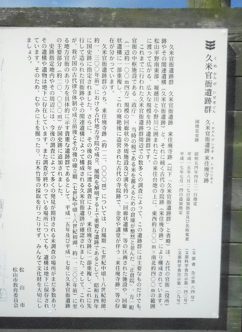 久米官衙遺跡群くめかんがいせきぐんは、松山市の東部にある来住台地に立地する古代の官衙かんが関連遺跡と古代寺院