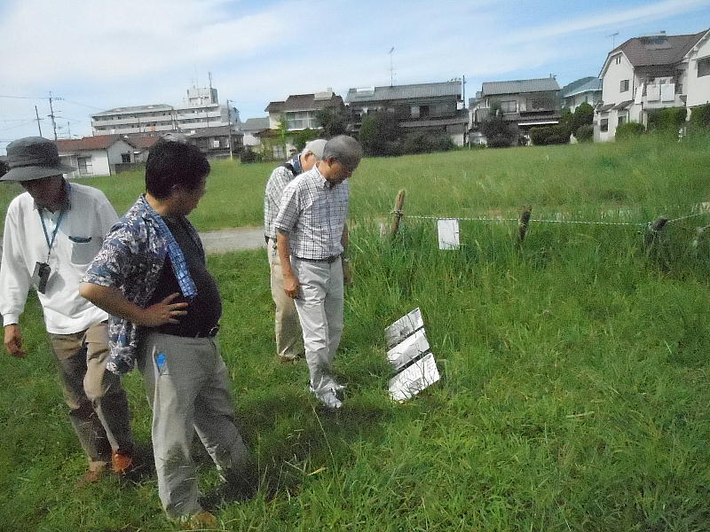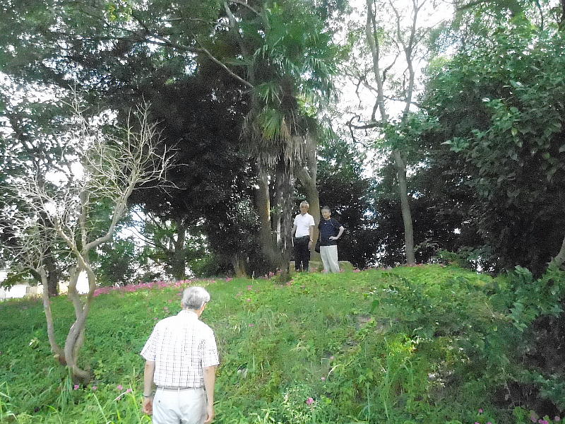 にやら看板らしきものが立っている。間違いない。廻りをよく見ると、考古館のお姉ちゃんが教えてくれたようになって