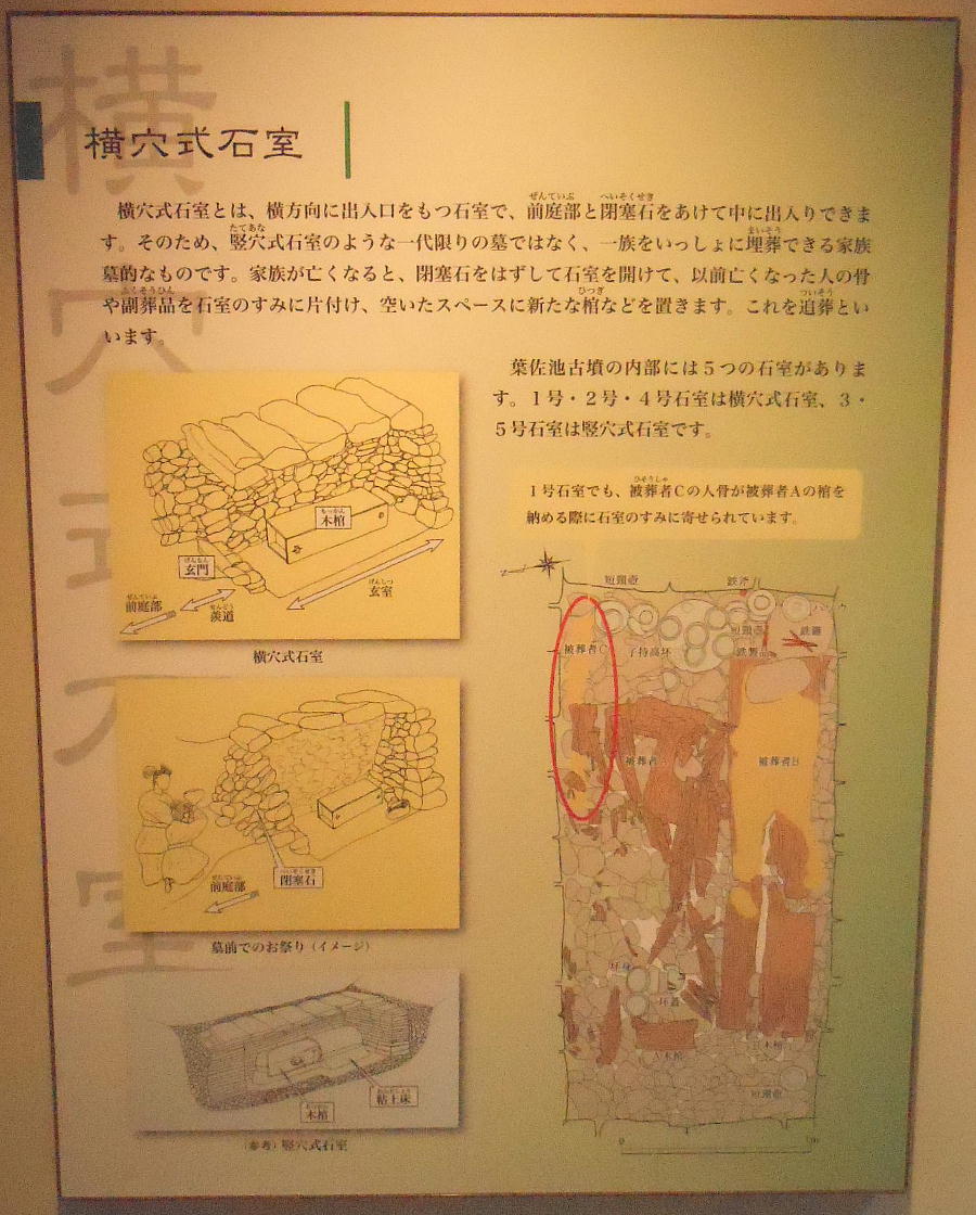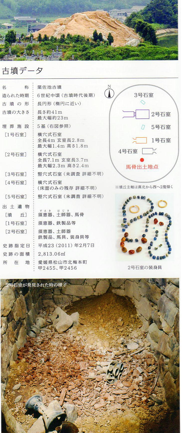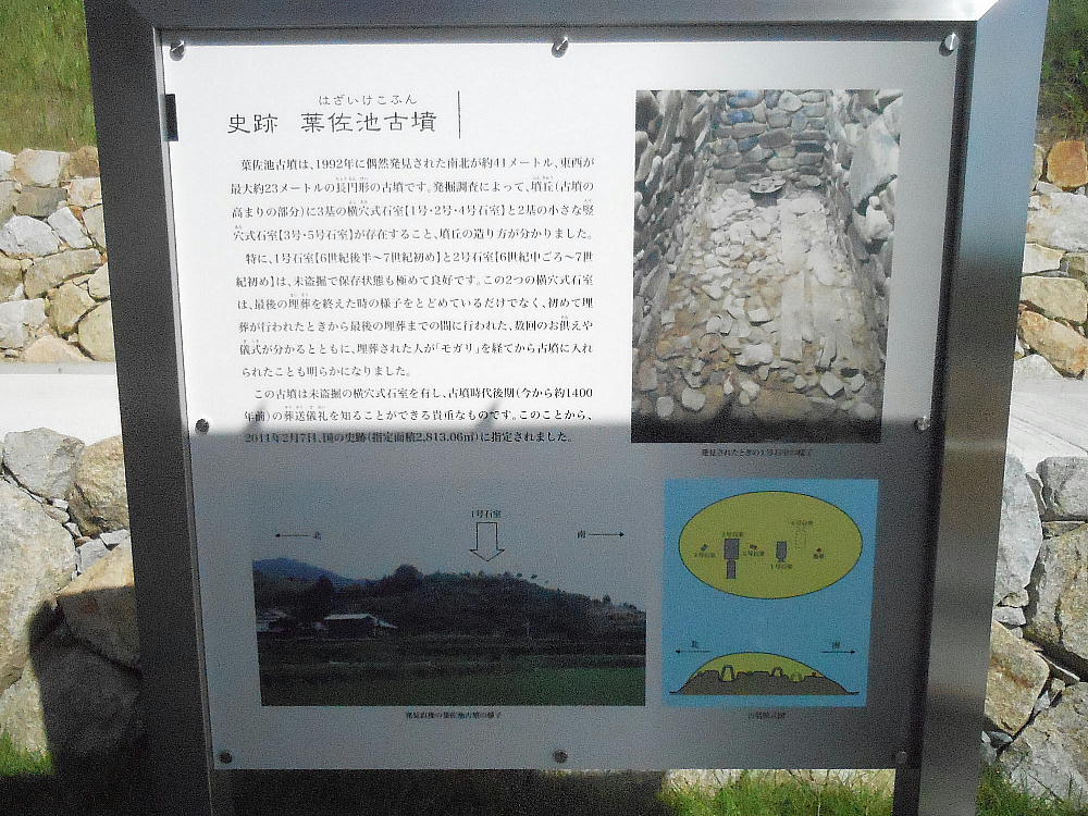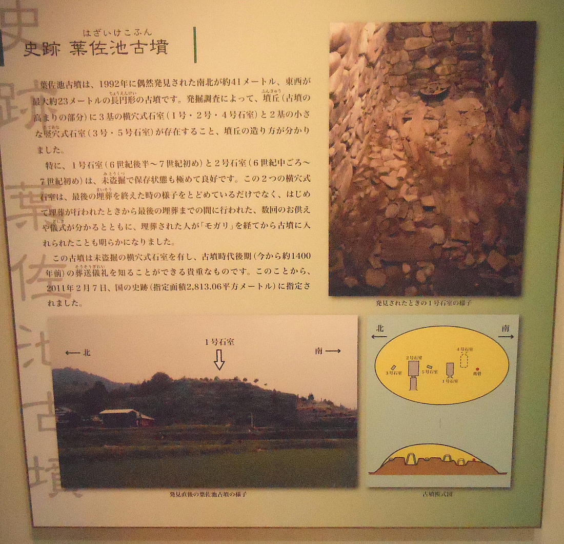 この葉佐池古墳は、古墳に石室が5つもあった事、主要な石室が未盗掘であった事、モガリが行われたと思える事等、