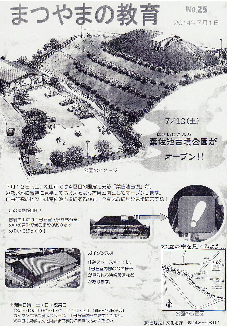 古代の息吹再生 「葉佐池古墳」 12日開園2014年07月08日(火) 愛媛新聞