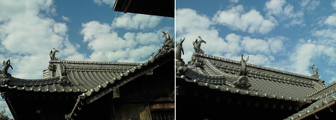 お城ならわかるけど、神社の屋根にしゃちほことは変わってる。