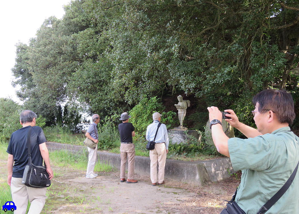 小学校跡地らしく二宮金次郎がいる。上で私が写しているのが下の写真。