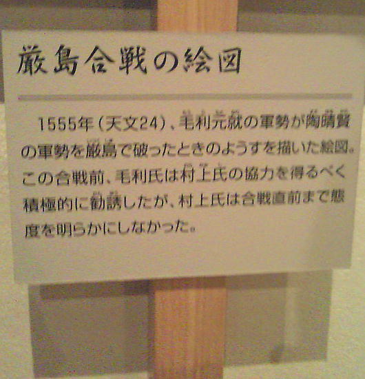 下界を見下ろす村上水軍の総帥「村上武吉」(景の親父: 読んだ人は判ります) と、