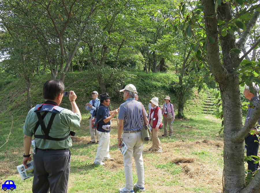 「はい、ここが三の丸です。鍛冶場の跡が見つかって釘や鏃が出土しています。作業場だったのでしょう」