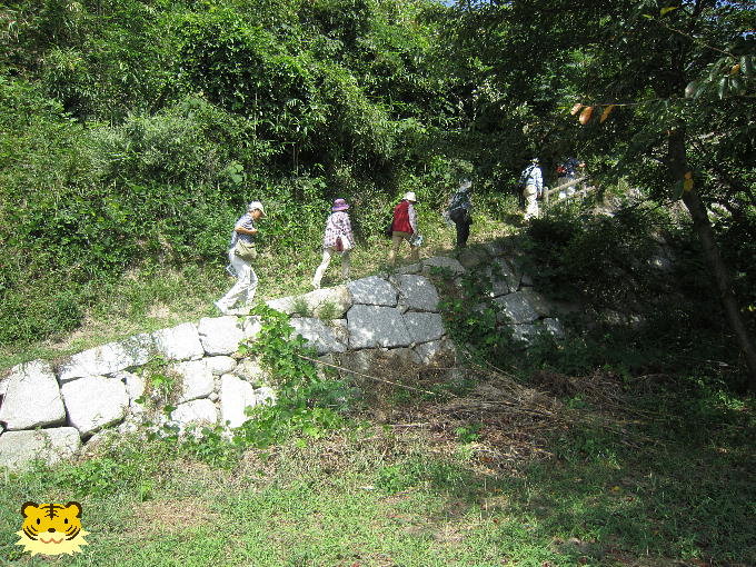 二の丸には何度も建て替えられた建物跡がありました。住居用に立てたモノのようです。では東南出丸へおりて行きましょう。