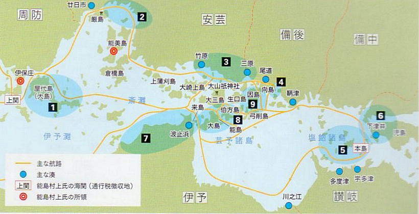 した海域であり、後に大まかに能島村上家、来島村上家、因島村上家の三家へ分かれた。
