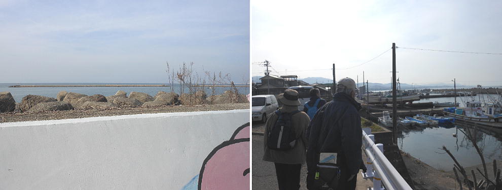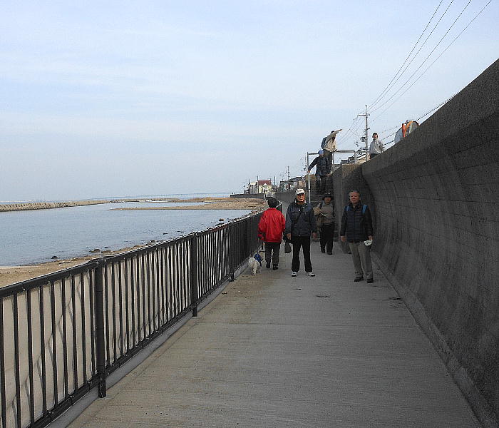 ほろ酔い気分で浜街道へ出て、海岸沿いに昼食場所を探して歩く。