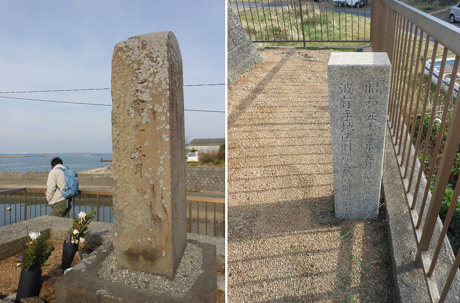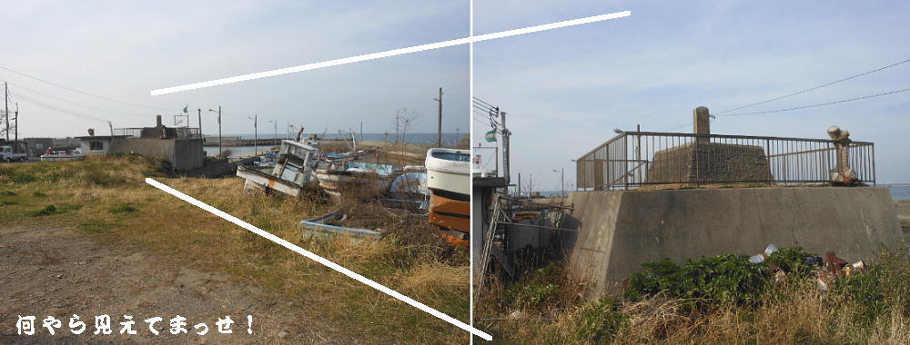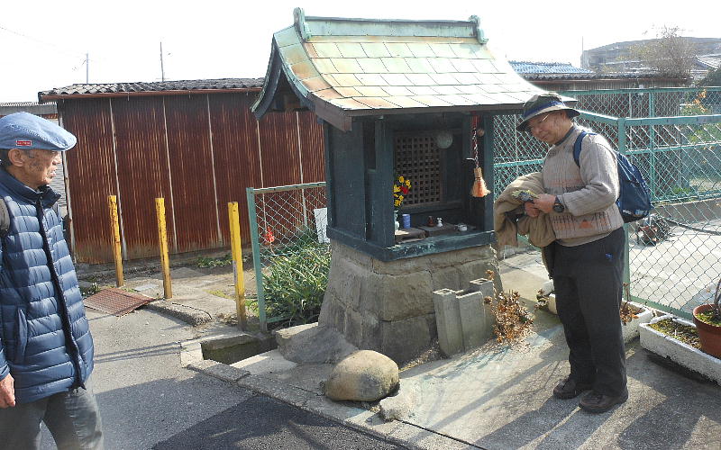 浜街道沿いの、尾崎村入口祠。下が浜街道。
