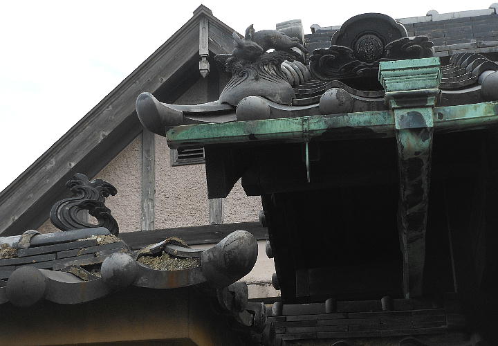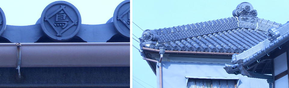 民家の壁に鍾馗様のような神像が埋めこんであった。屋根の上はよく見るが壁にあるのは珍しい。