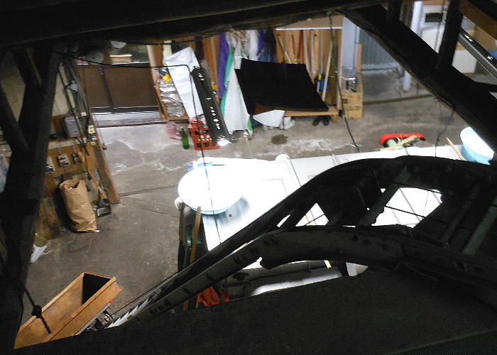 狭く狭く、低い低い陸橋下の通路。こりゃ軽かバイクしか通れんで。