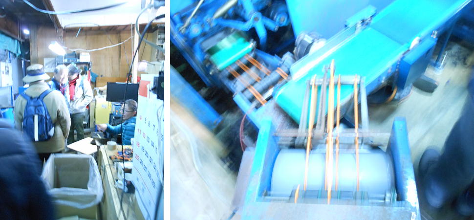 驚いた。全て全自動である。平たくして乾燥し、カットされて一枚一枚出口からでてくる。お姉さんがそれを束ねるのだ。