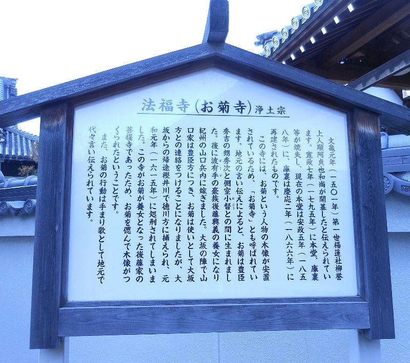 菊を哀れんで木像を作り後藤家の菩提寺である法福寺に納め冥福を祈った。法福寺は寛政7(1795)年に火災で焼失し、お菊
