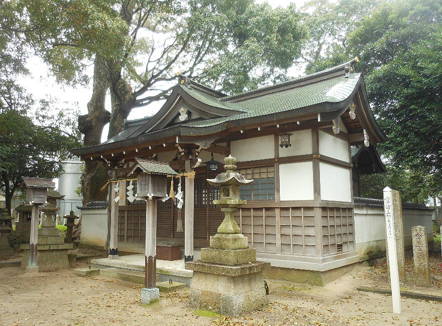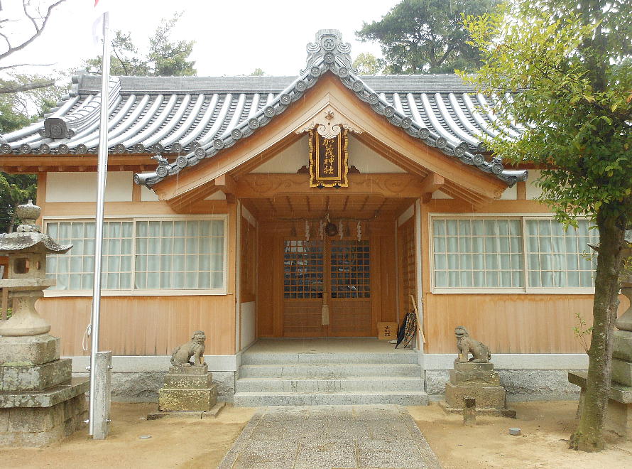 元は貝掛神社と称し、応神天皇を祭る八幡宮でしたが、天授年間(1375年ごろ)に火災にあい、祭神