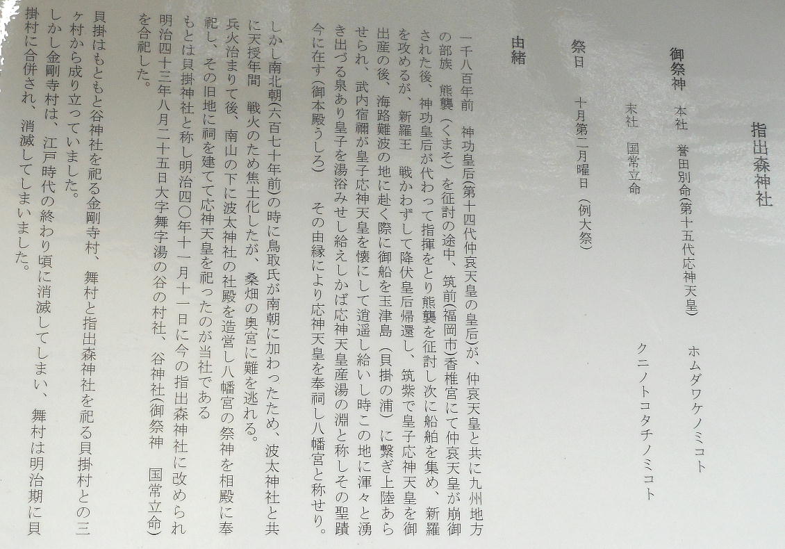 を波太神社に移し、その跡地に小社を建てたと伝えられています。現在も指出森神社には、昔の面影