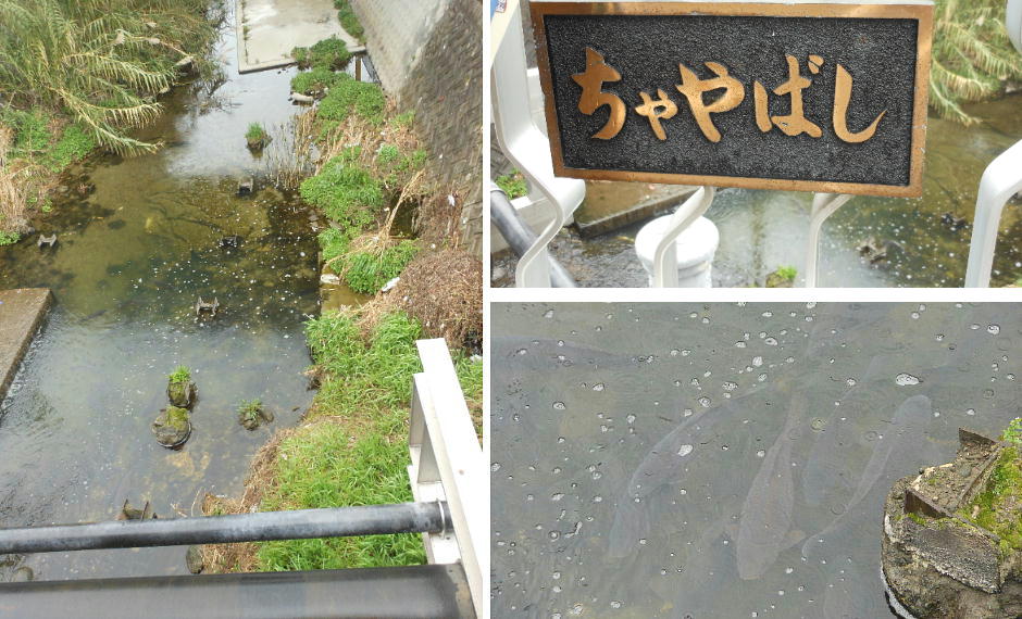 箱作駅の近く、茶屋川に掛かる茶屋橋の下にコイが沢山泳いでいる。浄化の為だろうね。