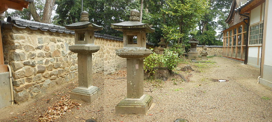 桃山時代の建築で、燈籠とともに大阪府の指定を受けている。