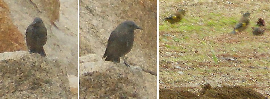 里海公園近くに居た野鳥、イソヒヨドリとカワラヒワのような。ボケてて良くわからん。