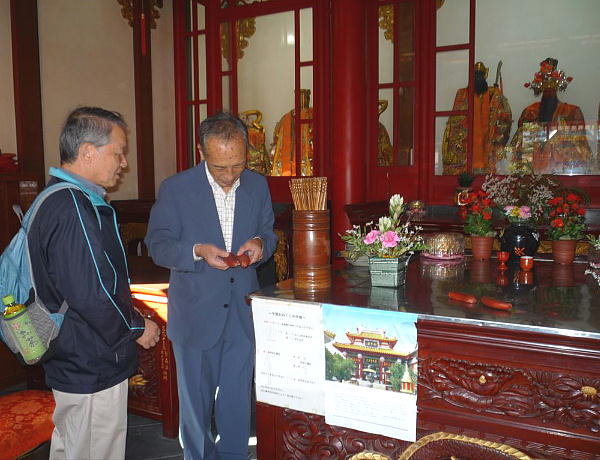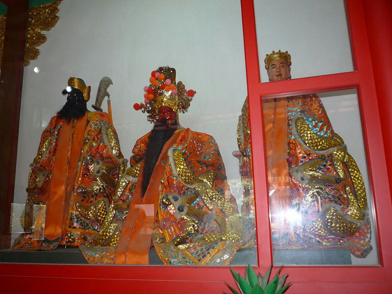 関帝廟の本殿は中央に関羽を祭り、右側に小説『三国志演義』で養子の関平(史実では実子)、