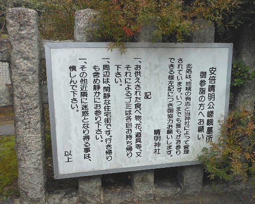 私は安倍晴明にも関心があり、彼に関する旧跡は訪ねて歩いてるが、ここは知らなかった。