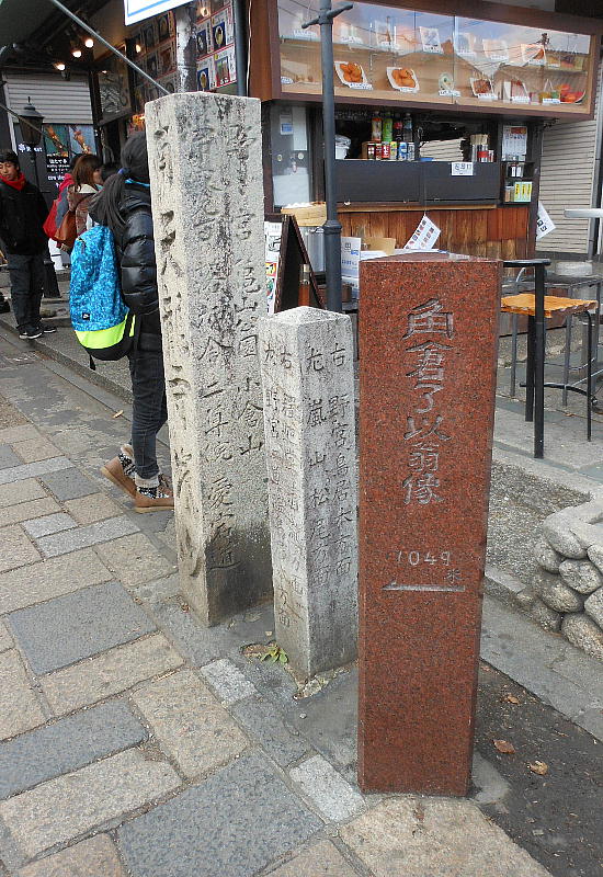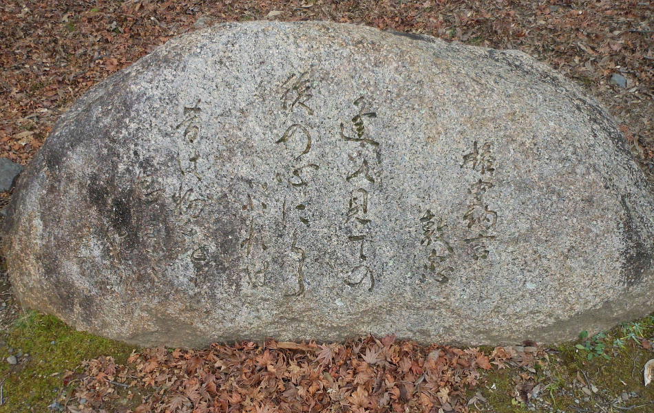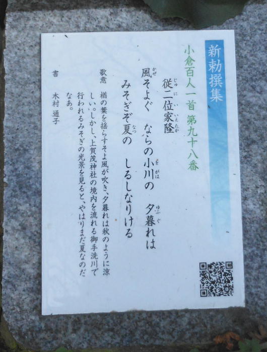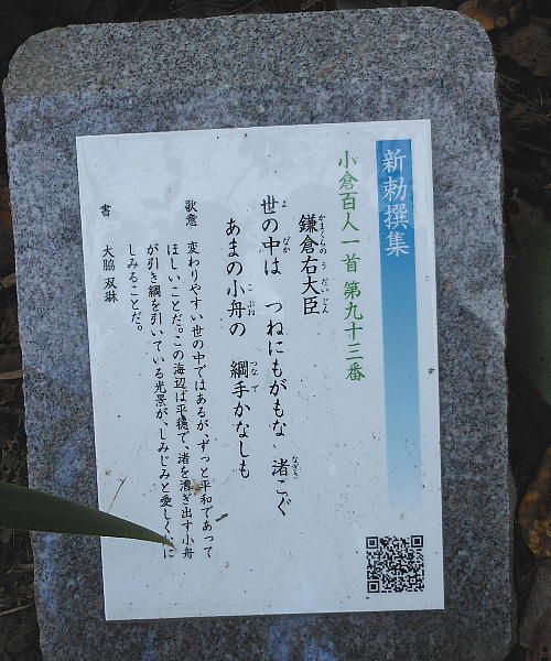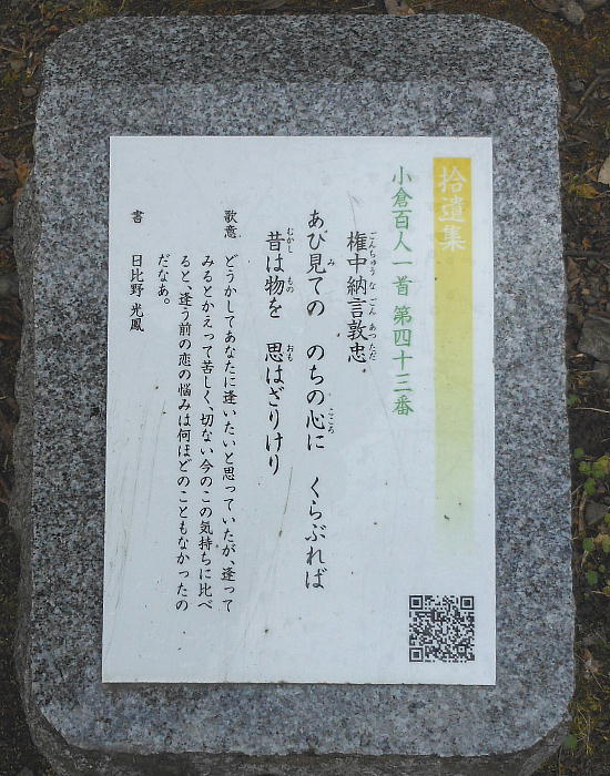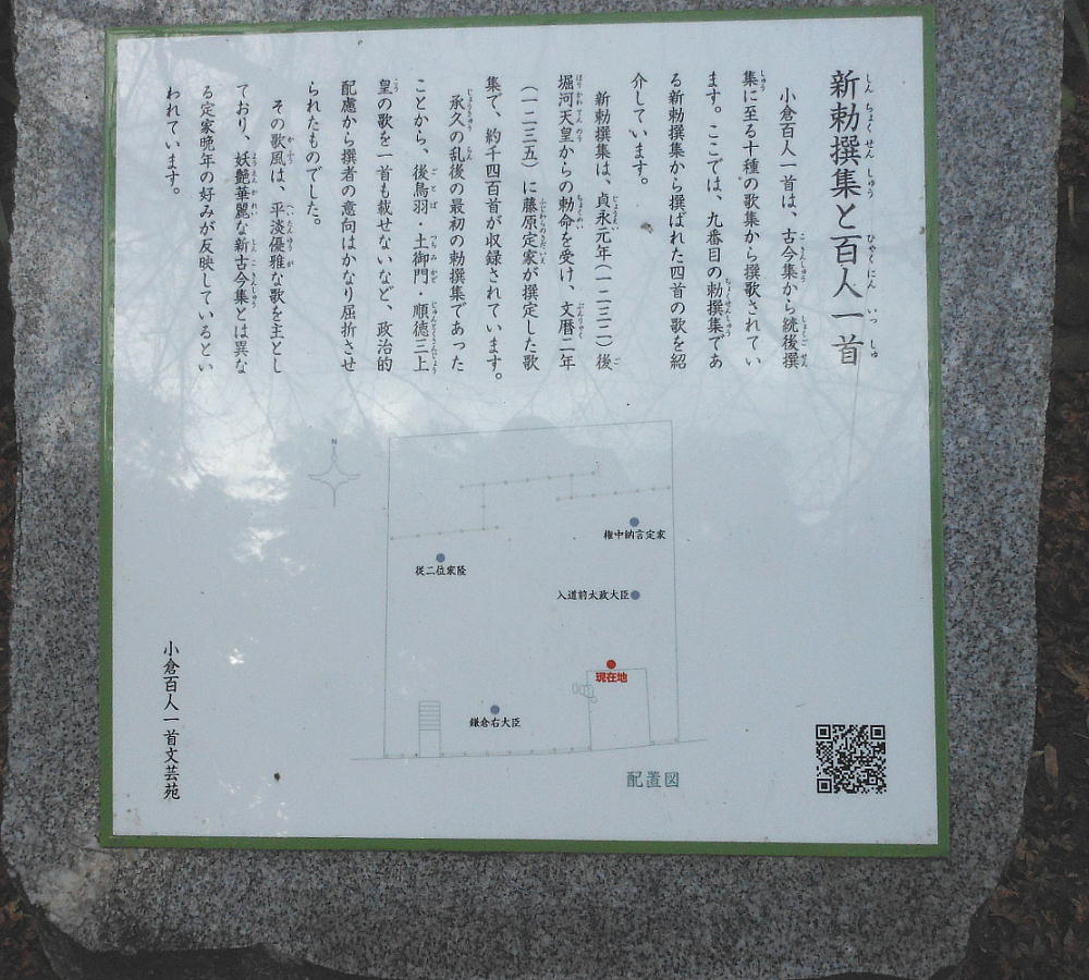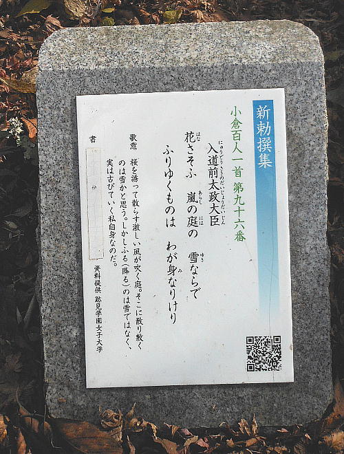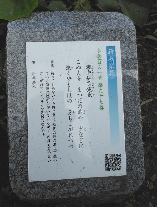 道ばたに百人一首の石碑コーナーがある。殆ど見ている人はいない。