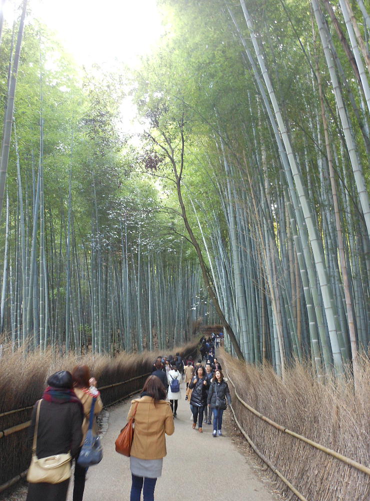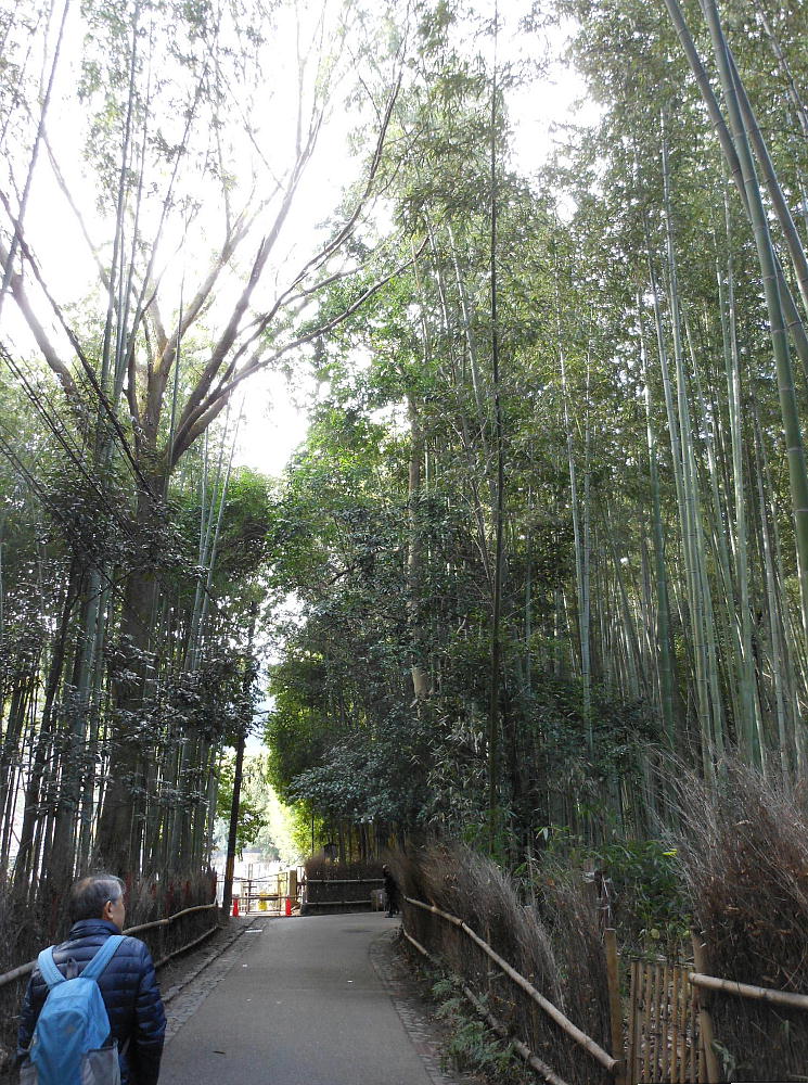 この辺りがよくポスターなどに登場する「嵯峨野の竹林」だ。さすがに青々しい。「竹林の三賢人やな」「ははは」