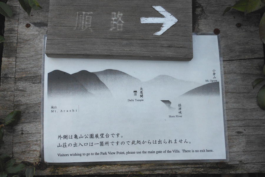 保津川を挟んで対面の尾根に、角倉了以の「大悲閣」が見えている。