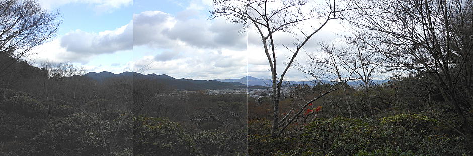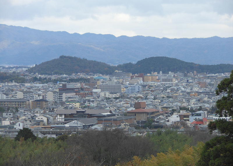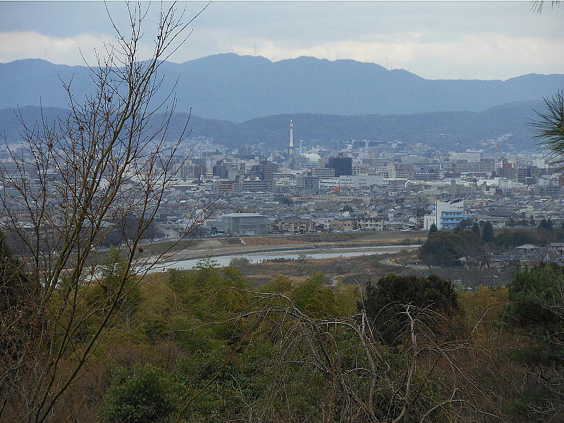展望台のような東屋から見ると京都市内が一望。一番景色の良いところに東屋を建てている。