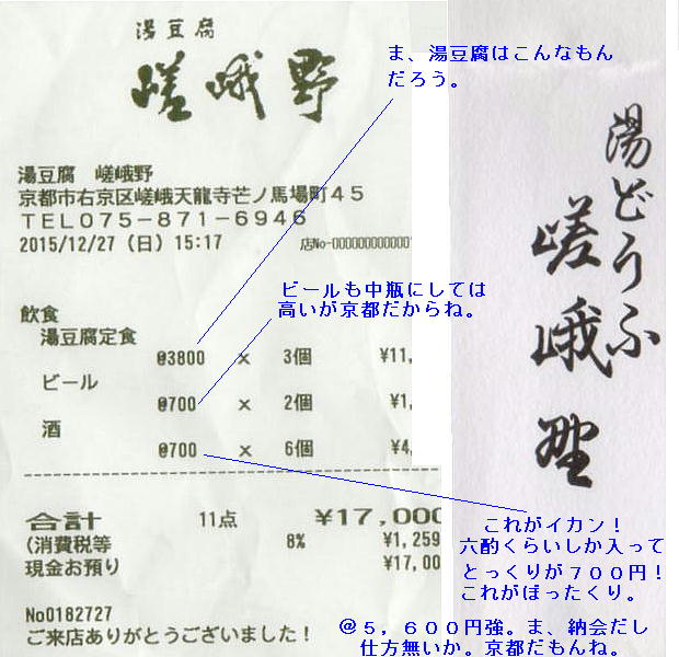 財布との兼ね合いで入れる湯豆腐やお湯があれば入るという事で、題して「行き当たりばったり嵐山」。
