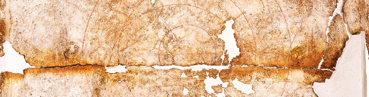キトラ古墳壁画は、石室内部に塗った漆喰の上に繊細な筆づかいで描かれたものです。本格的な天文図や、四