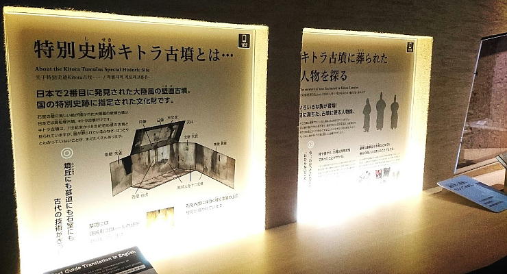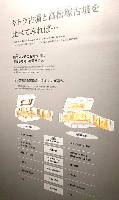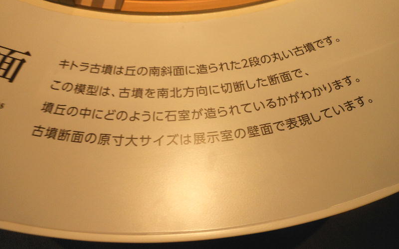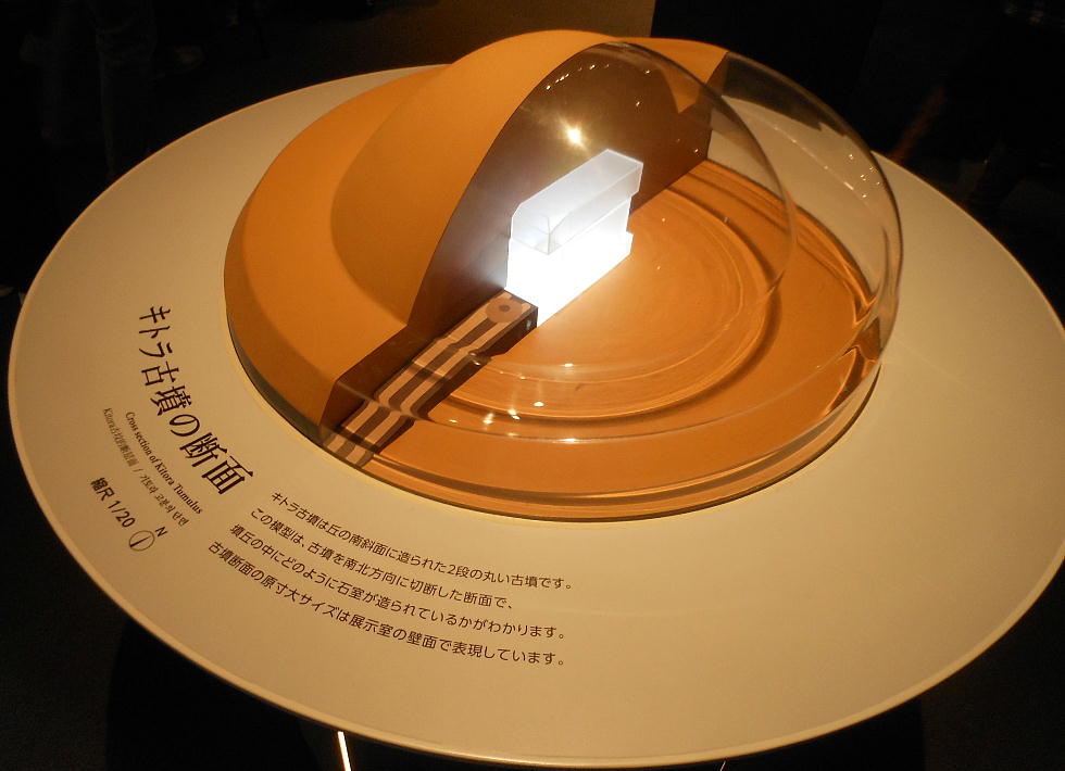 や、石室の原寸大模型を展示するほか、高松塚古墳や東アジア各地の古墳などとの違いが理解できる解説