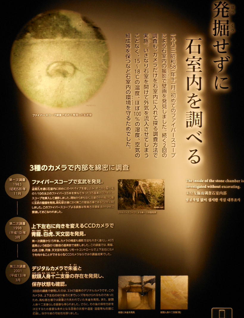ルカメラによる内部撮影が行なわれ、新たに朱雀像が発見されたほか、玄武や天文図はこれまで以上に