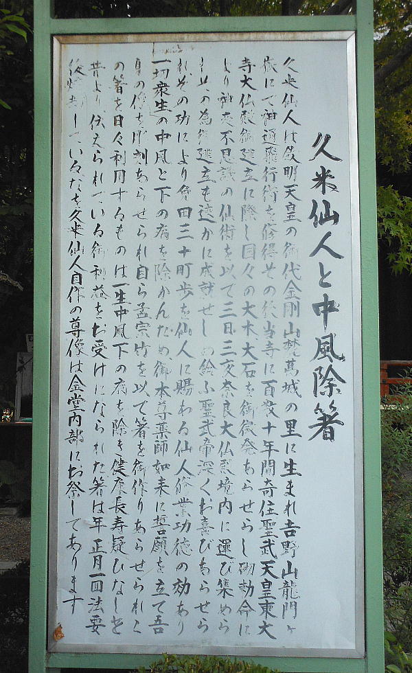 人と結び付けている。久米仙人の伝説(後述)がフィクションであることは言うまでもなく、創建の正確な事情