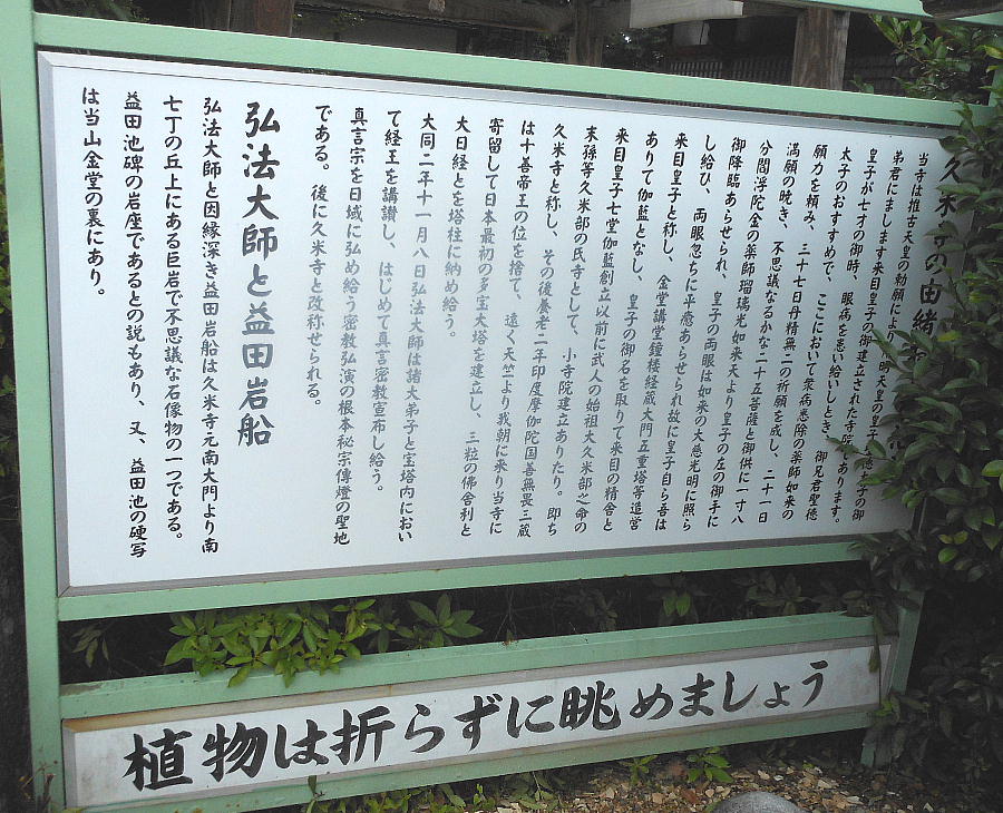 空海が撰文した「益田池碑銘并序」(ますだいけひめいならびにじょ)には、「来眼精舎」(くめしょうじゃ)