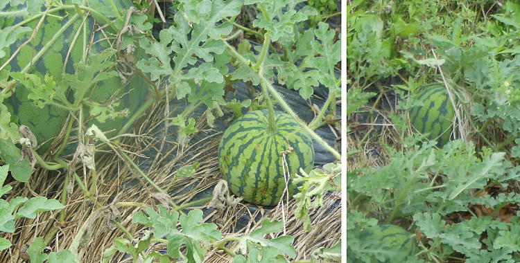 昼食後、宣化天皇陵へ向かう。路端の畑にはスイカがいっぱい。旨そうだった。