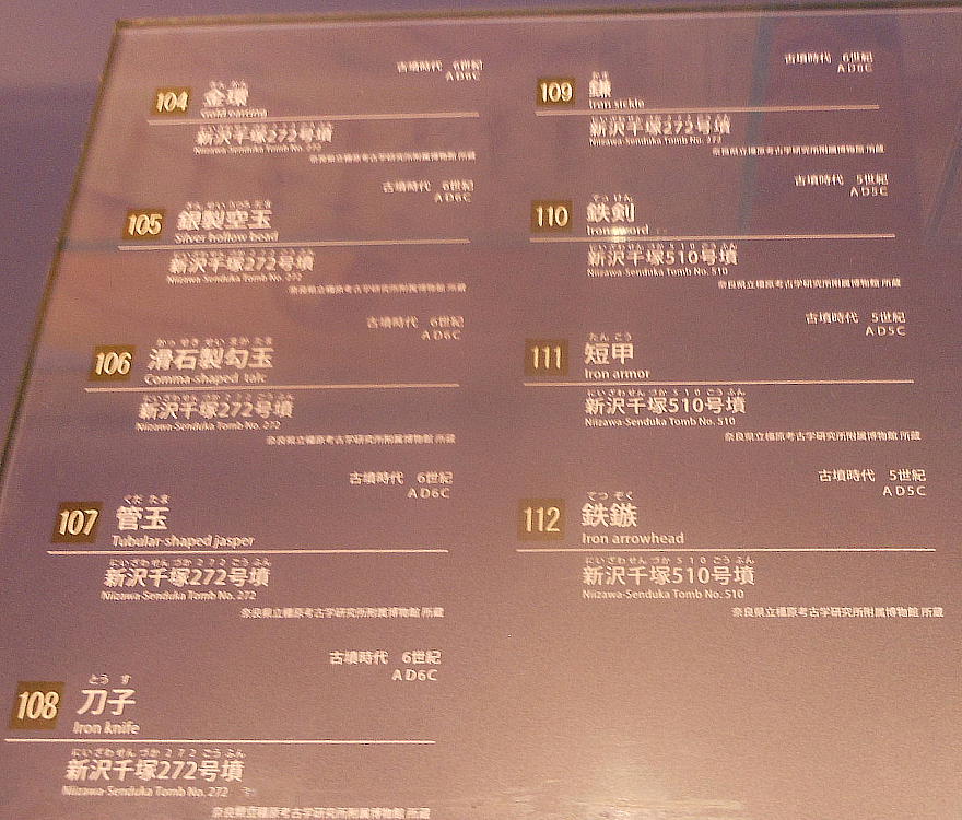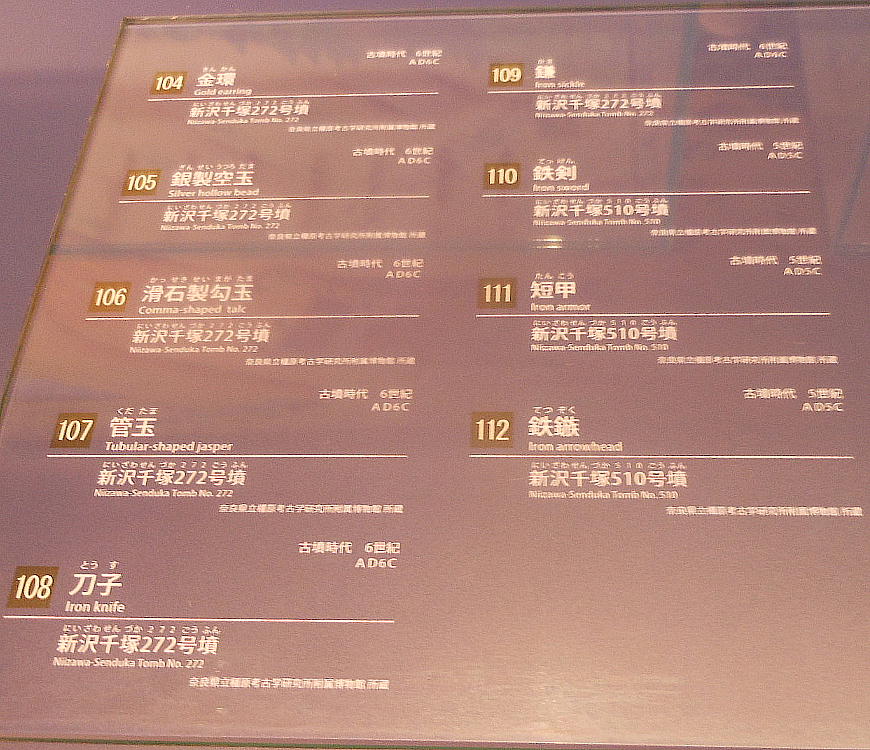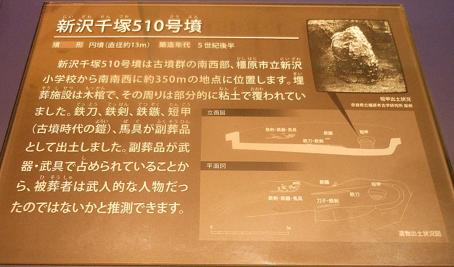 いる。新沢千塚からは、装身具や武器・武具といった豊富な副葬品などが出土している。