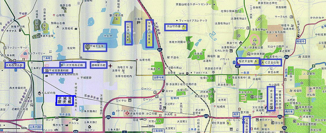 − コナベ陵墓 − ウワナベ陵墓 − 大山守墓 − 聖武天皇陵 − 仁正皇后陵墓 −