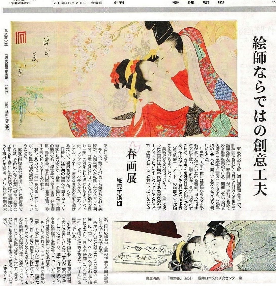 昨年12月23日まで東京・永青文庫で開かれた「春画展」が、京都の細見美術館で開催される。東京展と同様