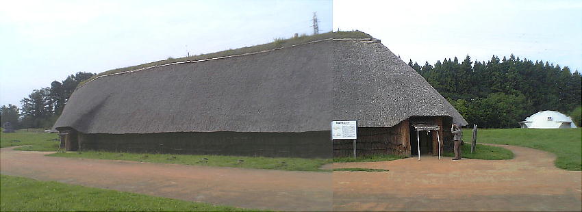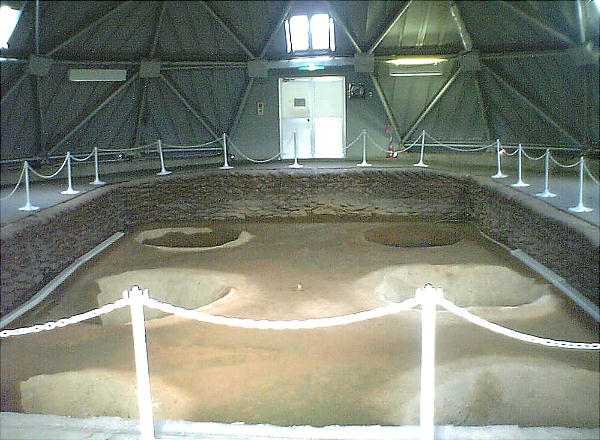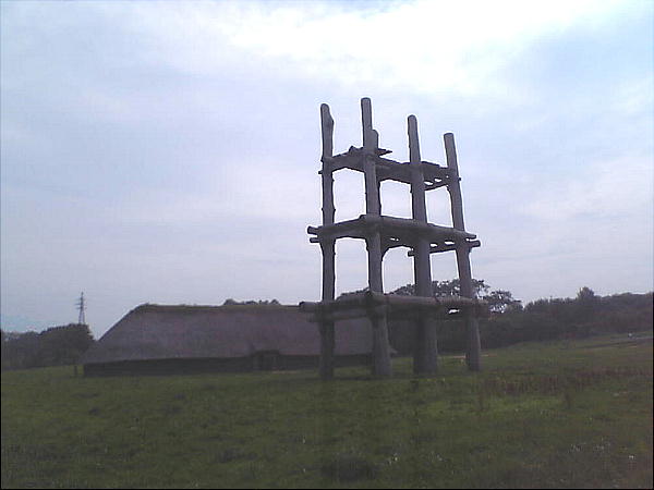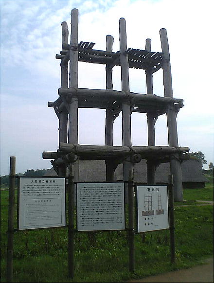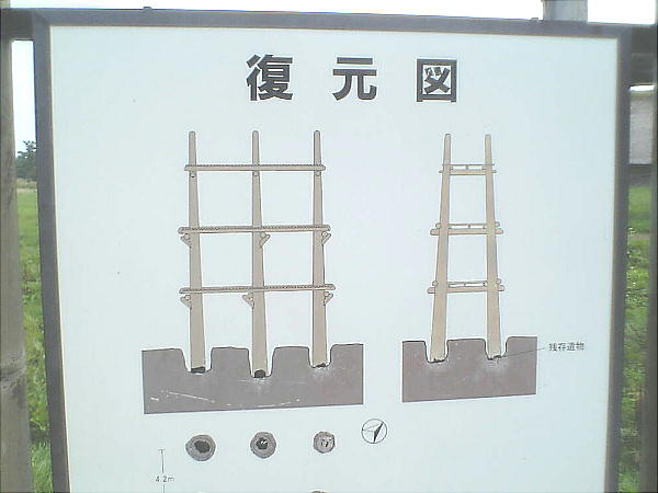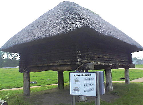 さて、現在の三内丸山遺跡跡には、幾つかの竪穴式住宅と大型竪穴式住居、高床式倉庫などが復元され、柱の跡とそこに残った木片、