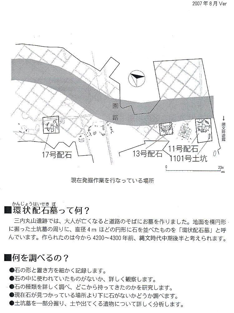 ここが発掘中の現場。その解説書も時遊館に置いてあった。ストーンサークルだ。