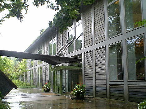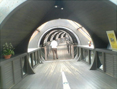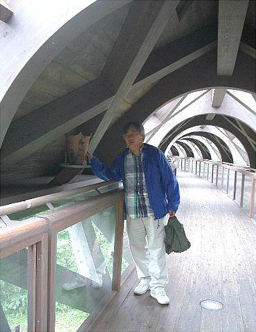 ある。「きききの吊り橋」と名づけられている。駐車場と博物館を結ぶ木製吊り橋で、屋根付きのカーブした吊り橋という非常にめ