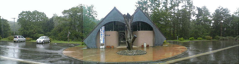 博物館の大きさは2,600uあり、この博物館も遺跡の竪穴住居と同じく土屋根造りになっている。縄文の風景に溶け込むように