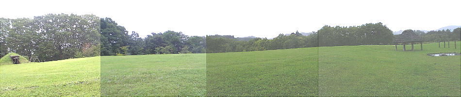 発掘調査によりその存在が確認された東むら、中央むら、西むらは、調査後に土を被せ保存。現在は緑あふれる芝の広場として開放