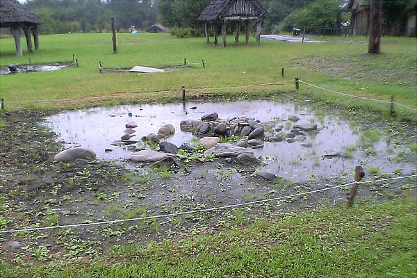 る。公園のなかには、調査成果にもとづいた土屋根住居が9棟復原されている。ほかにも3棟の樹皮葺き住居も復元され、最終的に