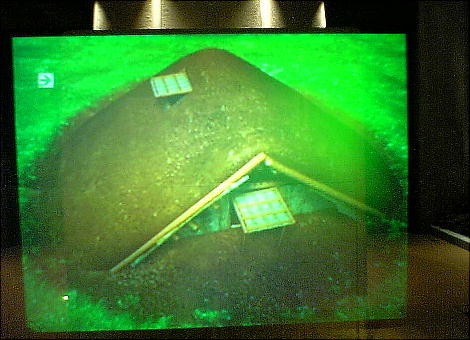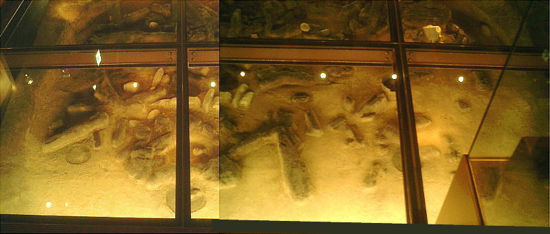 が包まれる。これもSF映画のようだ。さらに次の部屋へ入ると、足元に強化ガラス張りシースルーの床下に、4,000年前の焼