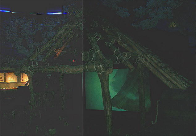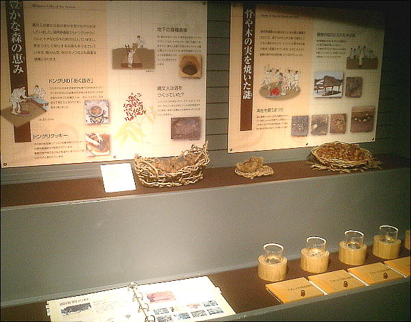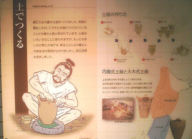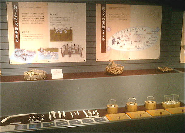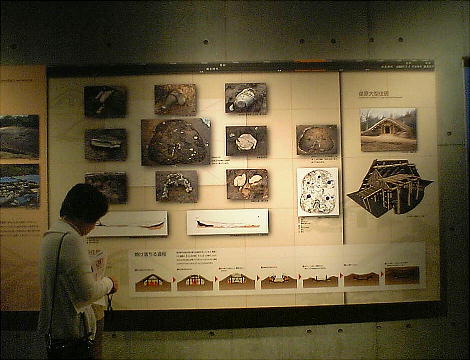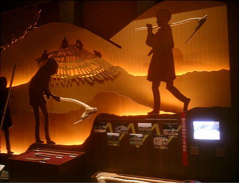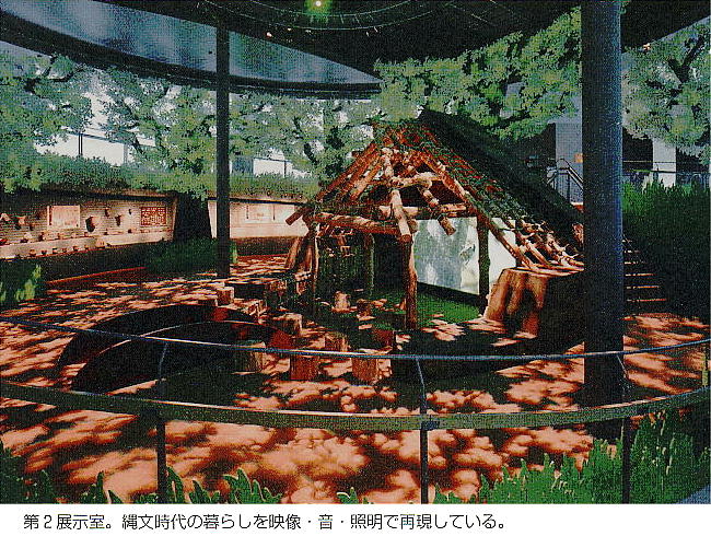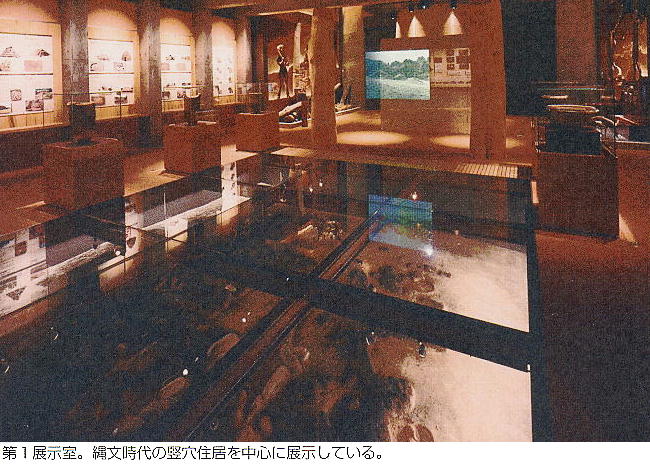 ーと音声が紹介している。展示室内には、日本各地の復原した竪穴住居と遺跡から出土した土器などが展示され、コンピューター・