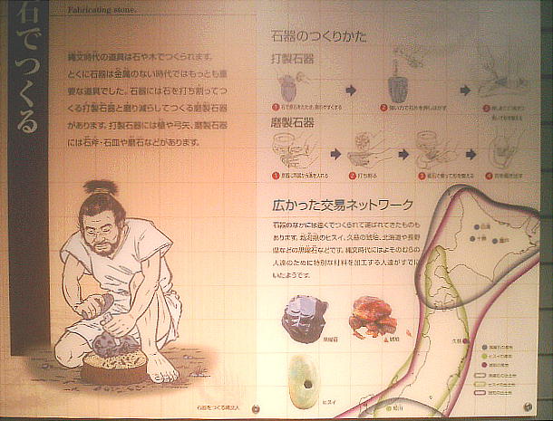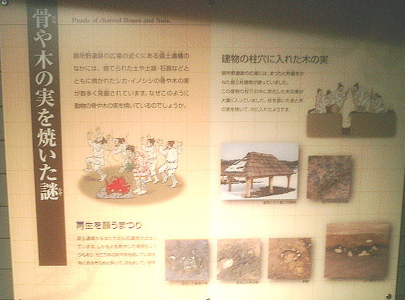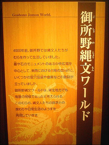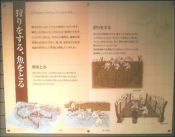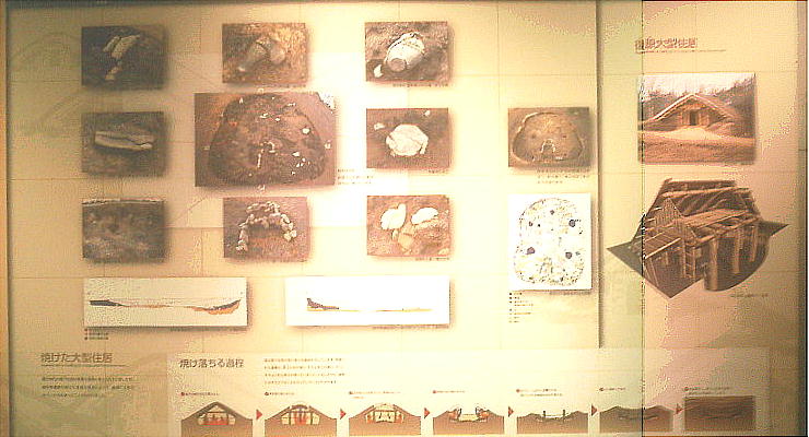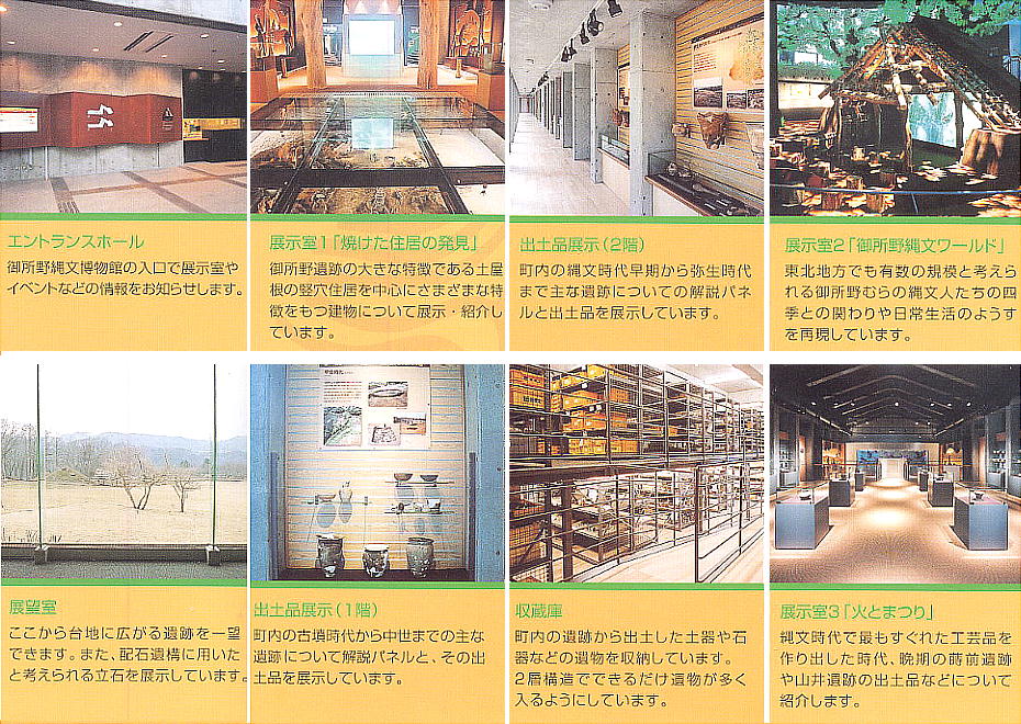 土屋根住居の出土状況をガラス張りの床下に展示し、その発掘から復原までを紹介している。また御所野遺跡を舞台とした縄文の暮