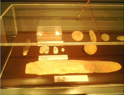 らしや遺跡の四季をスクリーンで上映したり、晩期の蒔前遺跡や山井遺跡の出土品を展示している。